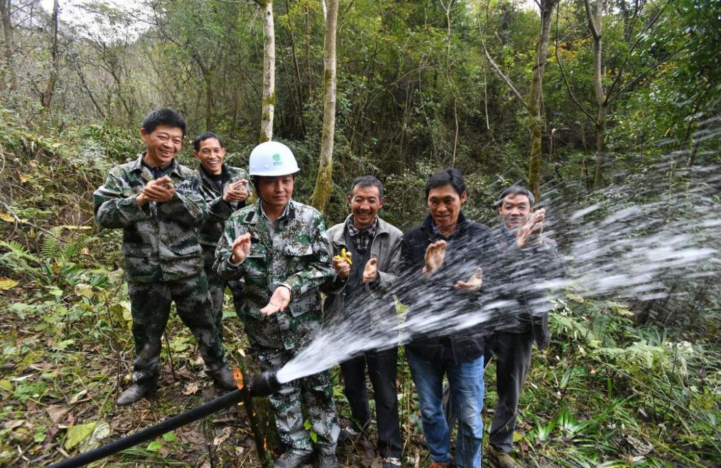 作为第一书记了解并深刻体会到田凤坪村冬夏缺水的现状,也了解到上个世纪70年代村民在天宝洞山脚下花了三年找水都没有成功的困难。根据“两不愁、三保障”的要求,必须做到“一碗清水到人家”,他感觉很大压力。他与尖刀班成员6次进利川协商并考察水源,探到天宝洞水源可以利用,并且可以覆盖朝东岩、青树脚、苍坪、大坪、田凤坪等小组800余人用水。但是天宝洞位于300米绝壁中间,施工存在很大困难,风险也很大。一个月、两个月、三个月……过去了,每次例会都会提到天宝洞,但迟迟下不了决心。终于在连续天晴三个月后,迎来进洞探水最佳时,因为这是枯水季节,也是能否确保长期有水的关键时期。于是下定决心请专业人士进洞实地勘察,终于探得水源地水量可以确保一年四季都有充足的水,接踵而来的是取水点比洞口低30米,而1个大气压只能支撑10.17米的水柱,30米如何支撑?虹吸现象如何产生?取水的热情一下降到冰点。晚上11点,他还在与中科院专家和高中物理老师联系,最后确定只有提高取水点,才能利用虹吸现象。第二天早晨,他决定施工队停止一切其他活动,继续重新寻找水源的源头,终于找到更加合适的取水点,此时水位与洞口基本持平,虹吸现象也得到充分利用,两管清水一直流到小水窖中,悬着的心也从此渐渐平息下来。此事经中央电视台、新华社、人民网、湖北电视台、楚天都市报、恩施电视台等多家媒体多次报道,引起社会的广泛关注。